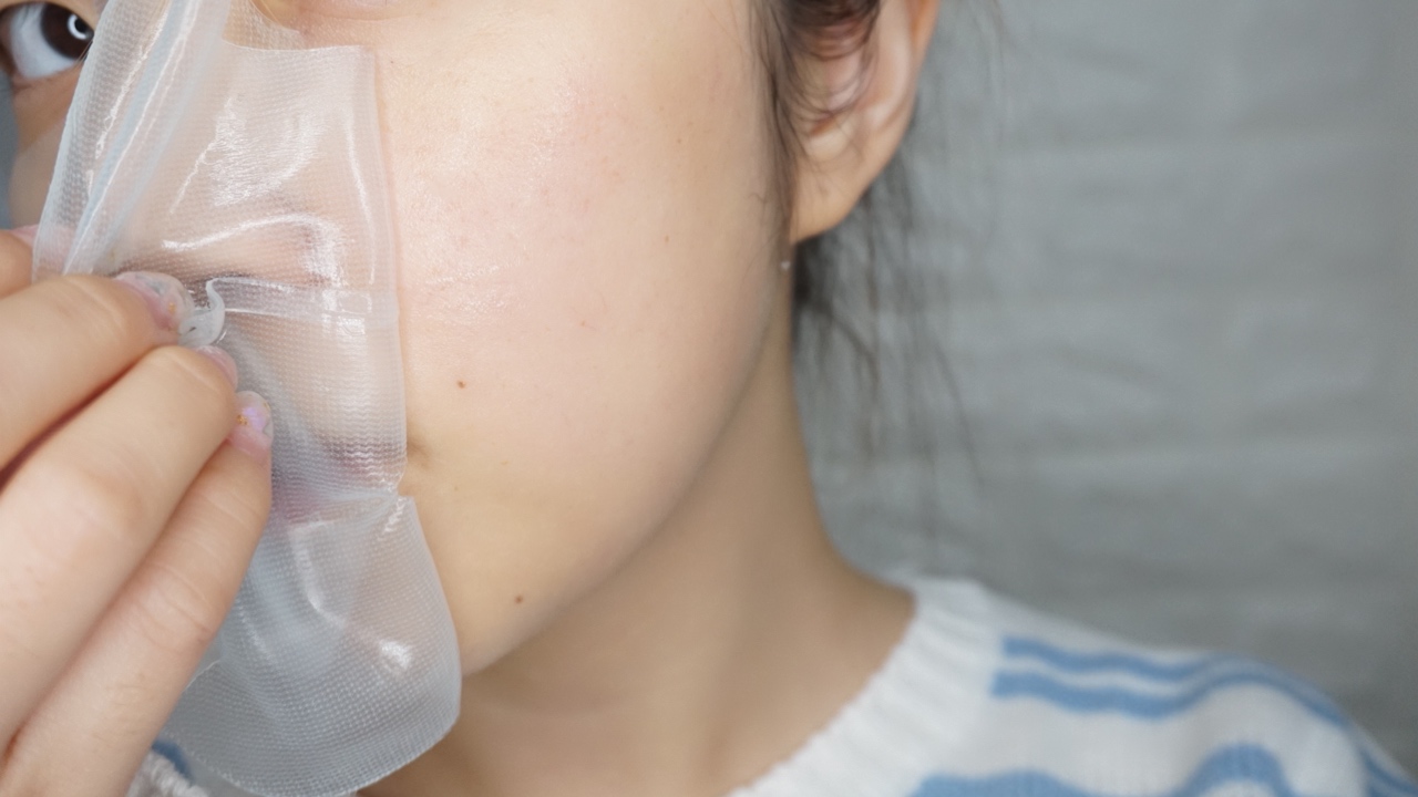清潔面部後,從包裝內取出面膜,