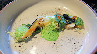 另一款頭盤係象拔蚌,質感夾口,一啖放入口好滿足,仲有西洋菜泡沫,配搭沙律菜都好好味。