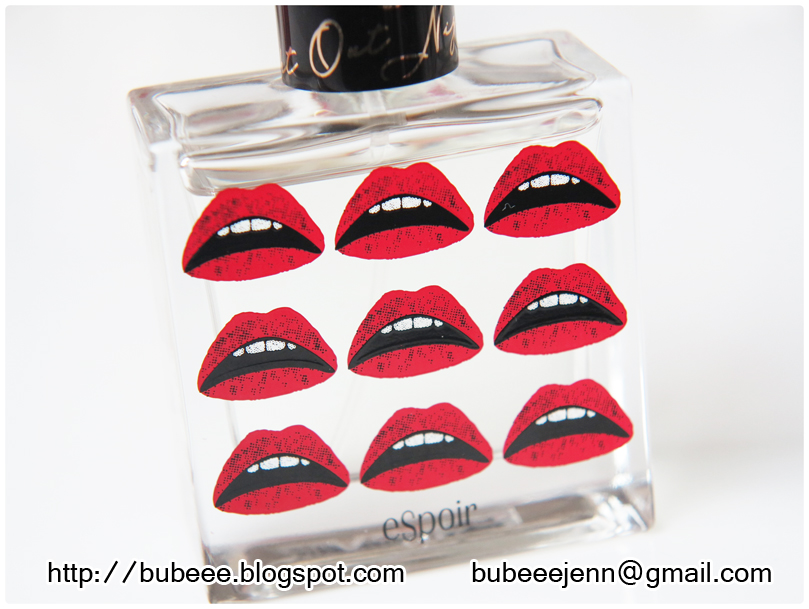 完成彩妝及服飾打扮後,千萬不要忘記選一瓶你喜歡的香氛。一看eSpoir Night Out Eau De Toilette 的外表已經感覺很性感,很有Night Out 的感覺。eSpoir Night Out Eau De Toilette 的香味是Sensual Fruity Floral (應該是花香及果香味的香氛),根據產品網頁的介紹,前調是 Citrus Fruity,中調是Floral ,而基調是Musky Woody ,其花香味偏重,淡淡的花香味,不會感覺很濃或俗氣,在情人節時噴上這瓶香氛也是不錯的選擇。(香氛的香味因人喜歡而異,整體來說,只要不要太濃或太誇張的香味就可以了。)