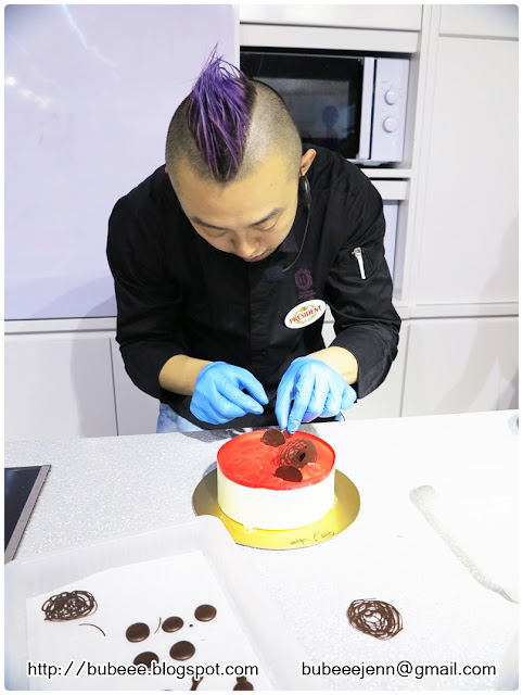 來到蛋糕(主體)的部份,Chef Koo 先講解及示範流程,然後便讓我們親身製作屬於我們自己的蛋糕。