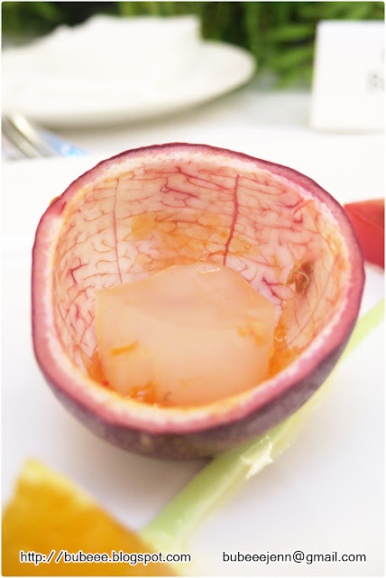 喝過當歸湯,便來到第二道菜 - 橙萃曼波魚凍 Ocean Sunfish Jelly,這道菜式以深呼吸活氧系列之成分 - 苦橙為靈感,採用柳橙結合富有膠原蛋白的曼波魚凍,感覺相當特別,而且為味蕾送上「小清新」的感覺。
