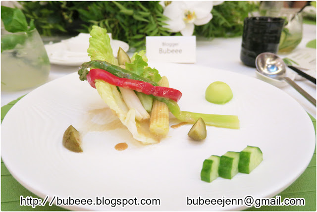 吃過橙萃曼波魚凍後,大會也準備了植萃綠森生菜捲 Oldham Bamboo Shoot Salad 作為晚宴的開胃菜點,菜餚使用豐富的膳食纖維,不但可以有益腸道,而可以使體內循環更加順暢。