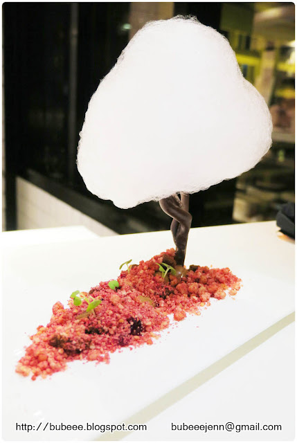 大家可以仔細看看樹下的「粉紅色泥土」,它的顏色配搭做得很美,而且吃起來不會太甜,整體感覺比想像中好吃。