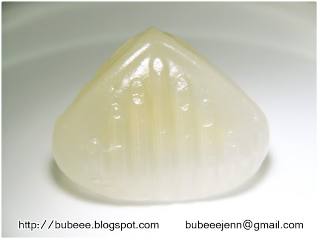 倒出冰粽,它的質感有點兒黏,摸起來很「滑身」,相當特別。(質感有點兒像水晶包。)
