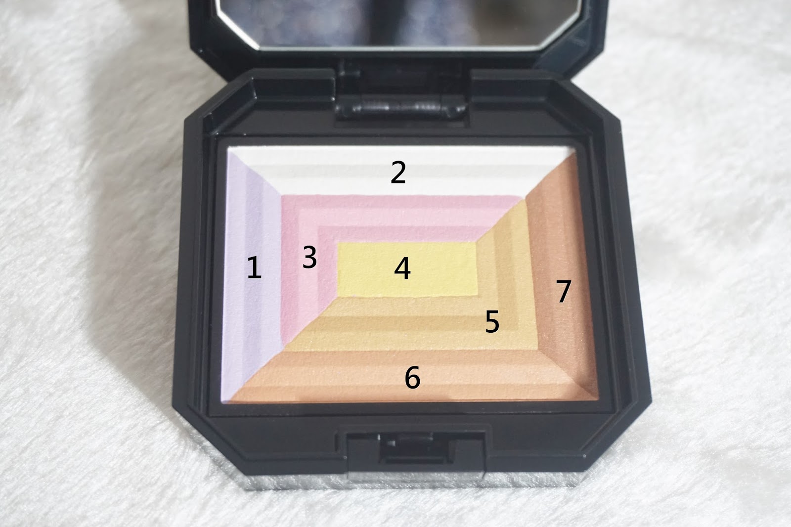 首先SHISEIDO Makeup七色亮肌塑顏蜜粉可以作定妝,將化妝掃以逆時針方向打圈輕掃蜜粉餅,混和七色粉末,再掃於全面即可。粉質貼薄自然,用後肌膚感覺清爽及有光澤,而且保濕及控油力不錯,妝容能夠完美保持一整天不脫落。
