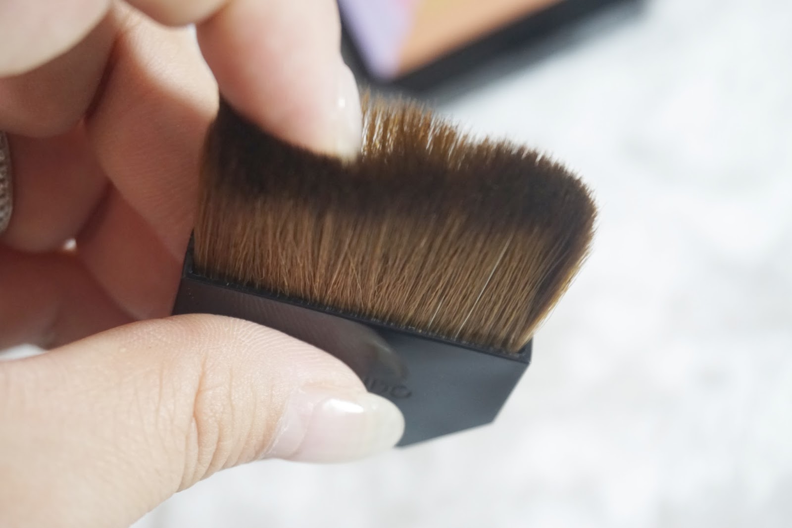 盒內附設的化妝掃毛質幼滑及鬆軟,於肌膚上使用十分舒適,而且抓粉力也不錯的說。
