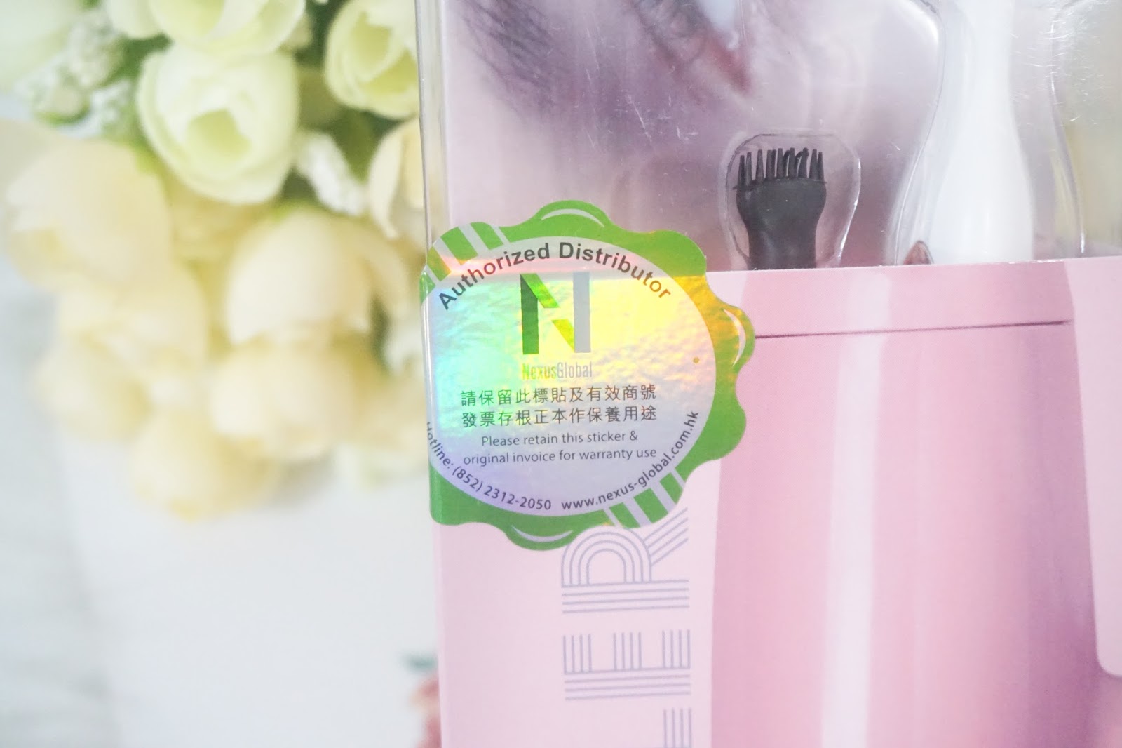 包裝盒上貼有認證商標,能夠防止偽冒,而且產品亦清楚列明擁有一年的保養期。備有兩款顏色選擇,包括:黑色 x 紫色/白色 x 玫瑰金色,定價為HK$299。