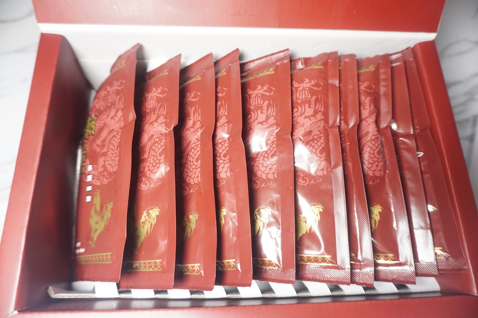 一盒美麗四物滴雞精共有10包,售價為港幣450元。