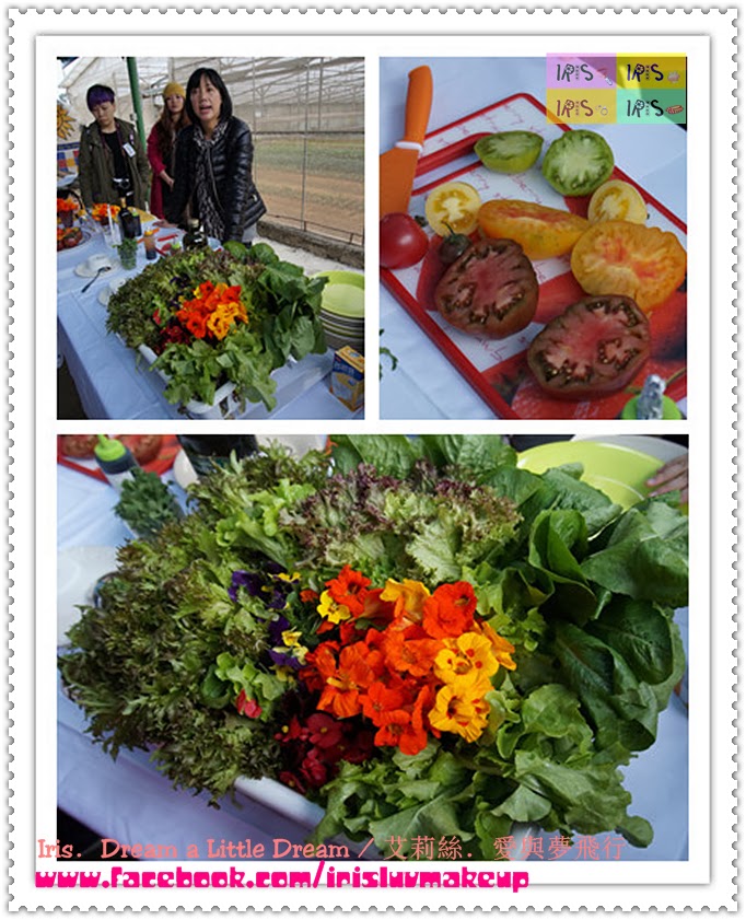 負責人不斷為大家講解農莊的蕃茄有多罕有,花菜種類質量好又繁多,連米芝蓮大廚也會來這類選食材和煮食,連外國皇室人員也會去參觀。我們這天能夠享用這些蔬果,真的很有口福呢。而且還真沒想過花也可這樣即摘即吃,味道還不錯啊!