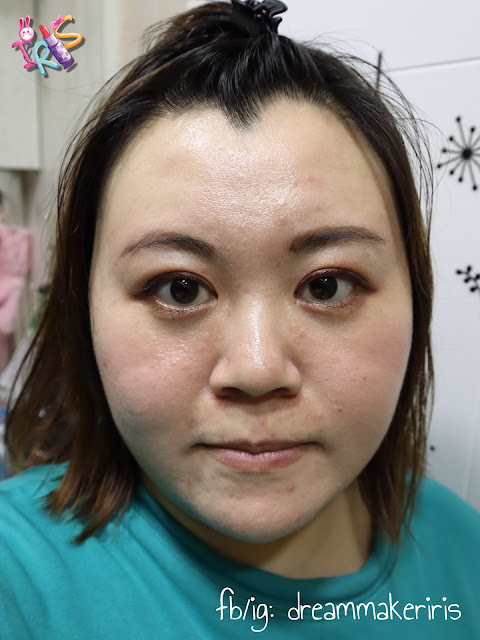 在潮濕悶熱的天氣下,帶妝經歷過猛烈太陽、驟雨,由中午到晚上,又汗又雨水,像我這種混合性缺水泛油肌,也可以只是出了點面油,沒有浮粉溶妝,大部分底妝尚算健在,效果不錯呢。