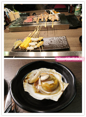 位於銅鑼灣的火山燒, 是用上火山石來燒烤食物的, 爐的 1 邊是燒烤用, 另 1 邊是保溫的, 是串燒放題形式, $298 在 2 小時 15 分鐘內任食,