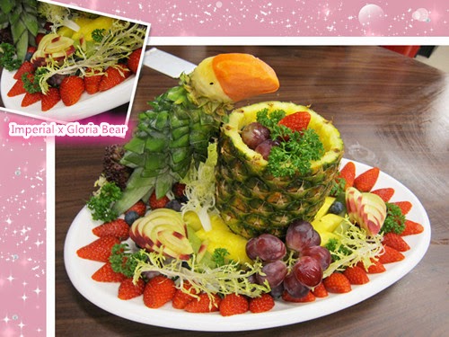 生果已切好而且整齊地排列著, 菠蘿微甜不澀舌, 桃駁李爽口,