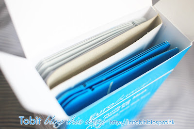 接著敷上藍色包裝的 Mask 2 10分鐘以修復及收毛孔,跟 Mask 1 同樣剪裁,同樣無不適感