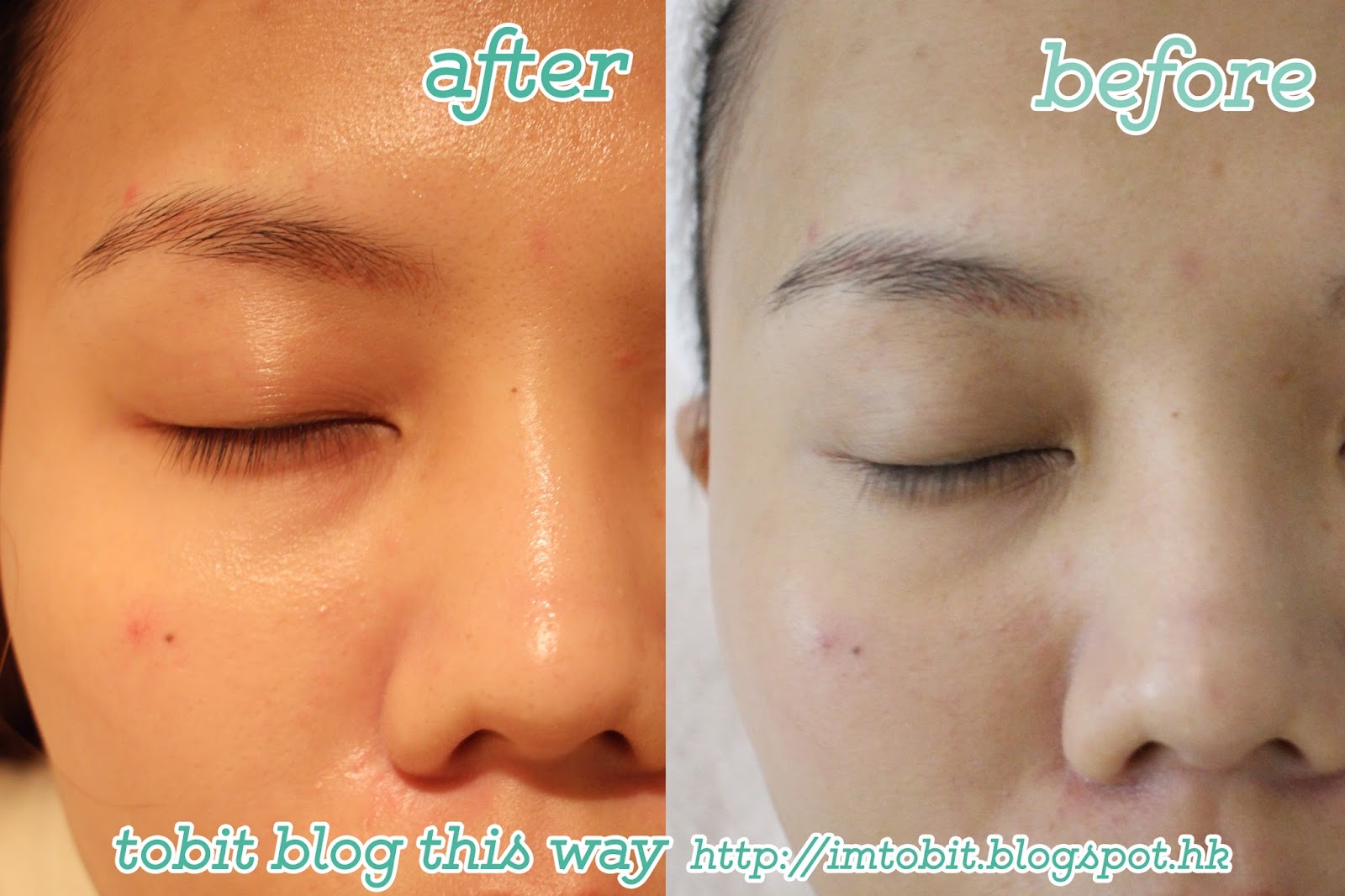 不知不覺75分鐘療程就完成,照鏡看看皮膚水噹噹的,原本鼻翼下方乾到起皮屑的位置都變滋潤,全臉明顯透亮有光澤,看來更有神采!
