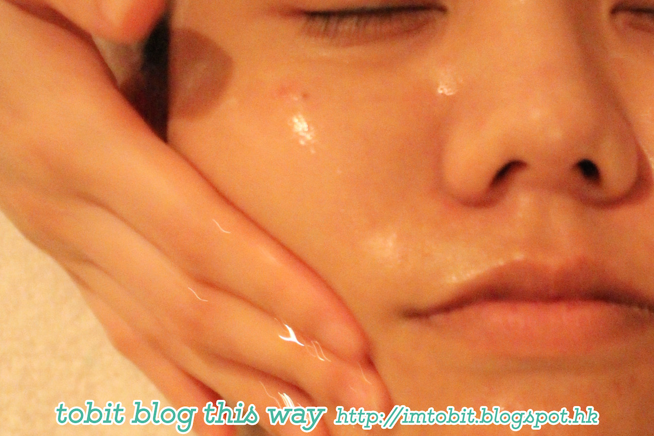 緊接導入兩支提升皮膚水分的精華​​後,以第三支精華​​ NUTRI FORCE 按摩全臉連眼及頸項,含有油分的 NUTRI FORCE 則負責將水分及有效成份鎖住,限制水分蒸發流失;配合美容師力度剛好的按摩真是太太太舒服,眼睛疲勞感也能紓緩一點
