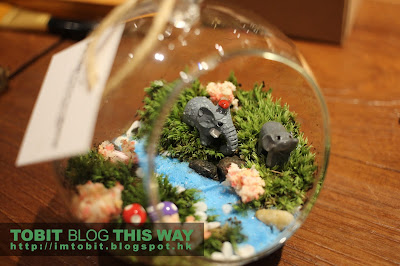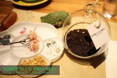 選好碎石及裝飾公仔就起動了!在噴濕了的泥上舖草皮及碎石,再小心插上裝飾