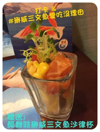 凡Order挪威三文魚刺身, 將它拍照上載至 Facebook 打卡並 Hastag #挪威三文魚愛吃沒理由
