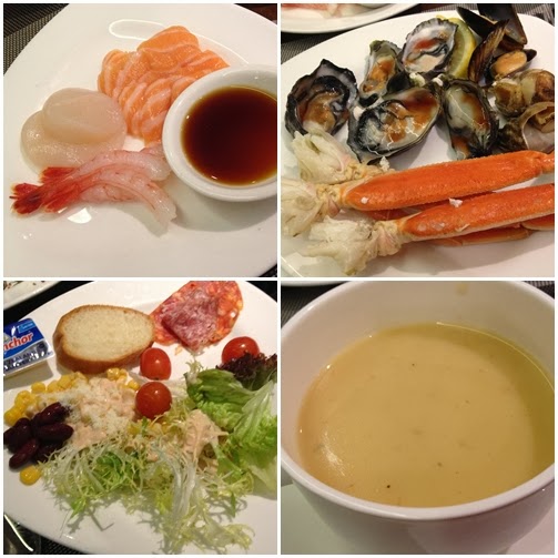 首先我都係進攻海鮮及刺身, 之後就係沙律及忌廉湯!!