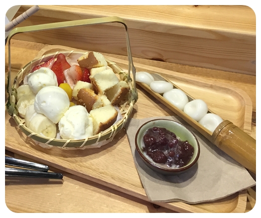 蛋糕, 雲尼拿雪糕, 香蕉, 士多啤梨, 甘粟, 紅豆蓉