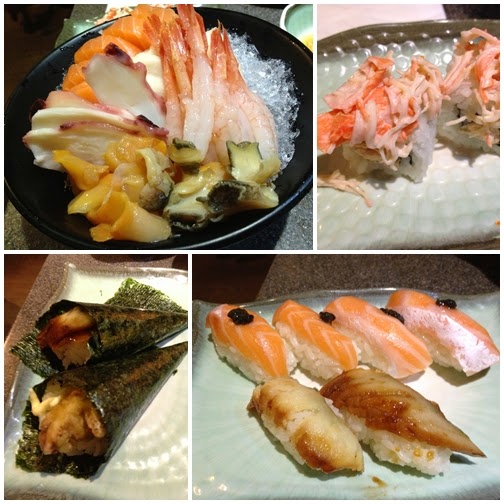當中包括有三文魚, 甜蝦, 八爪魚, 榮螺, 赤貝, 白玉拖羅!!!