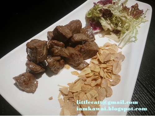 蒜香牛肉粒 大小剛好的一口一粒,牛肉粒質感軟熟,不會煮得過熟,咬開有肉汁流出。