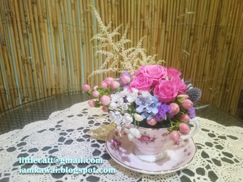 鮮花大概可以放三至一星期,視乎鮮花及天氣情況,之後骨瓷杯可留著用,總算幾環保吧!同場加映,那有貓不愛花,仙氣是有原因的。