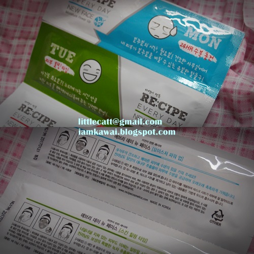 七天各有不同, 每片面膜後面也有印用法,韓文不明白,也有圖文,