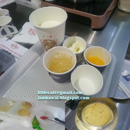 每人都有一套材料,包括左 總統牌嘅忌廉 奶油 牛油 雞蛋 魚膠片 等等.....