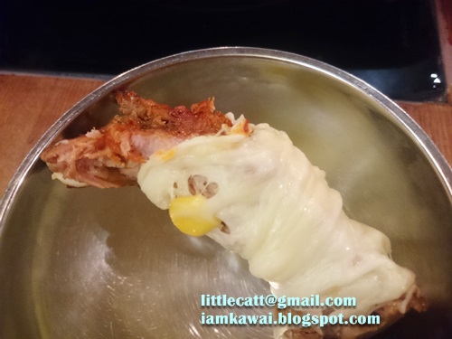 店員幫忙把芝士包著肋骨來吃!