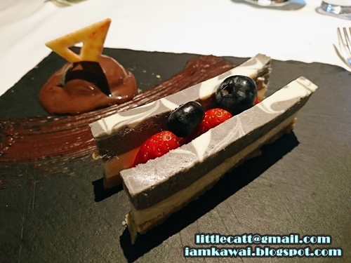 黑芝麻芝士蛋糕一開二,中間放入了雜莓,感覺比放在旁邊更吸睛,兩層的芝士蛋糕口感軟滑輕盈不賺。不過,芝麻味只是淡淡的,如果是芝麻味可能會有點失望!另外,朱古力雪糕非常濃郁又幼滑,苦甜剛好,好想要多一球!