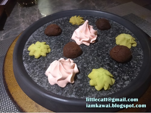 法式蛋白餅脆身,綠茶曲奇入口不膩不過不失未見驚喜,如此的結尾好像有點馬虎,