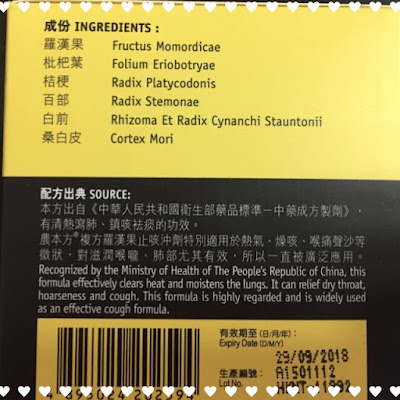 成份 ~ 羅漢果...批杷葉...桔梗...百部...白前和桑白皮...