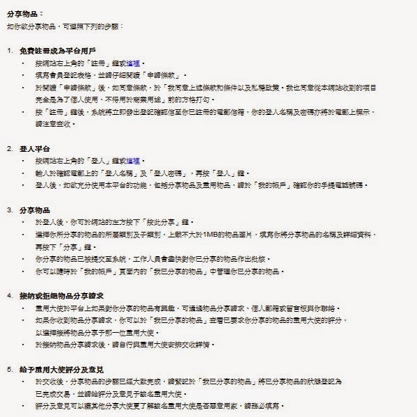 將自己已不再需要...但可再用的家居物品分享予其他有需要的巿民...