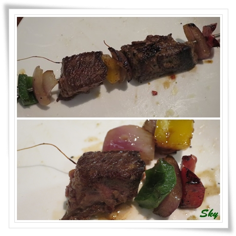 賣相幾吸引, 份量也有不少, 當中包括虎蝦串, 澳洲和牛串, 西班牙黑毛豬腩串, 粟米串, 雞翼串和炸薯條.