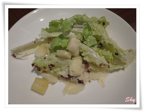 沙律面放了芝士, 麵包粒和煙肉碎, 但煙肉碎太少.