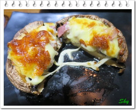 而且蘑菇面上放滿了芝士和煙肉, 雙重口感, 與蘑菇是最佳拍檔.