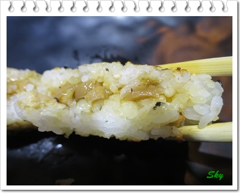 飯團外層略為燒過, 入口時感覺似食飯焦, 微微脆脆地.