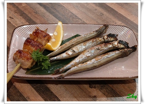 串燒自選兩款, 我地選了燒多春魚和大蔥豚肉.