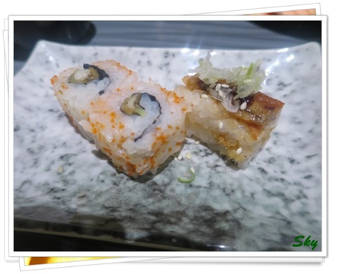 朋友點了刺身, 我不食魚生, 就點了軟殼蟹手卷, 鰻魚雙壓和加州反卷.