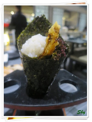 手卷的紫菜好脆, 軟殼蟹肉質也不錯, 若軟殼蟹再大件些, 口感更佳.