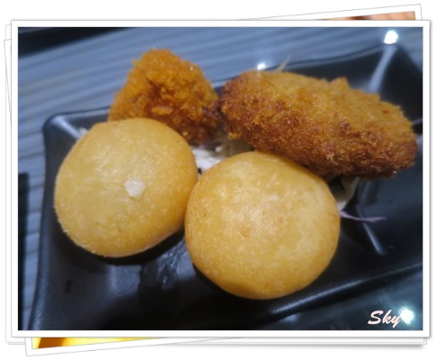 另外, 也點了炸物, 包括芝士年糕, 可樂餅.