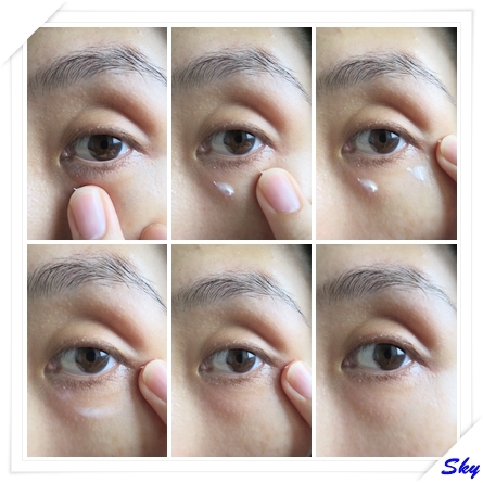 取適量份量均勻搽係眼部四周位置, 再用手輕輕加以按壓.