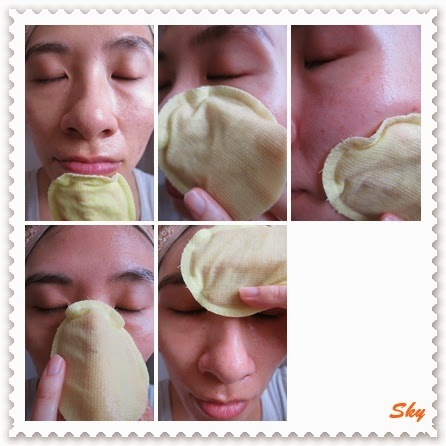 面膜棉有兩面, 先用網面輕拭皮膚.
