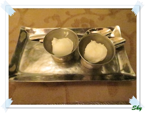 飲完湯, 奉上 Sorbet, 清一清喉嚨.