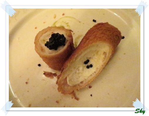 而魚肉味道不錯, 配合魚子醬一齊食, 味道更突出.