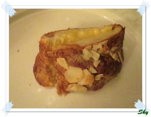 我自己最愛食這款, 麵包好鬆軟, 還有一些杏仁片在麵包面, 內裡有一些吉士醬, 兩者好夾.