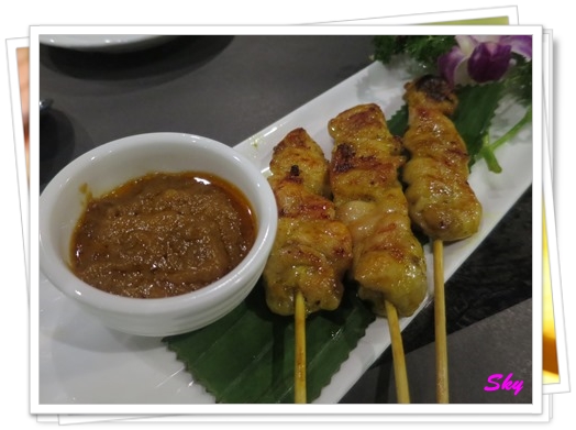 小食點了清萊香葉蝦酥魚和串燒沙嗲雞.