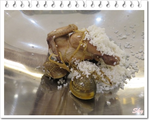 第一層是蟶子, 象拔蚌, 翠肉瓜和菇.