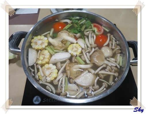湯底上枱, 湯中有好多野菌.