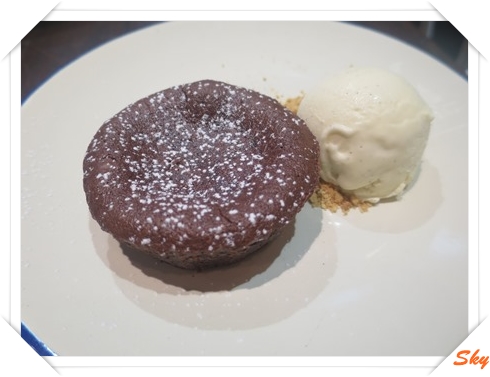 切開心太軟後, 不見有朱古力流出, 焗的時間長咗, 而且入口似食蛋糕多一點, 幸好朱古力味夠香濃.